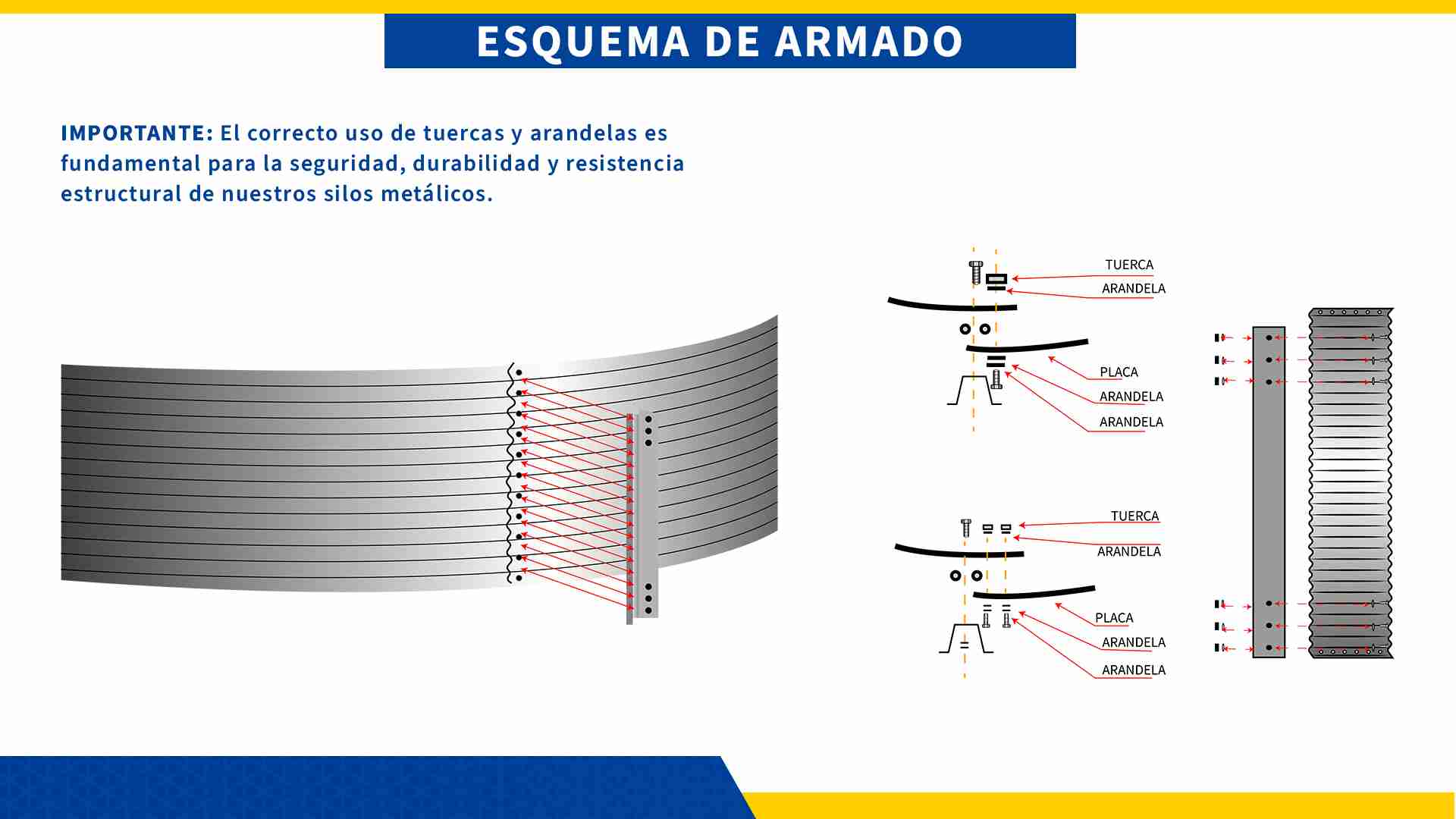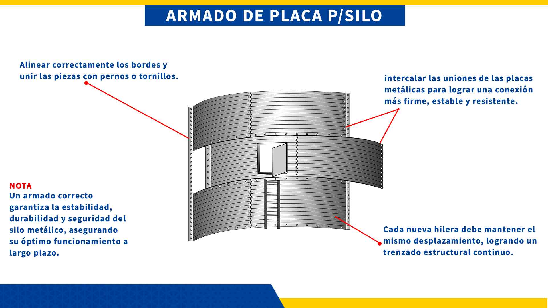 - Armar el anillo inferior: unir las primeras planchas con pernos.